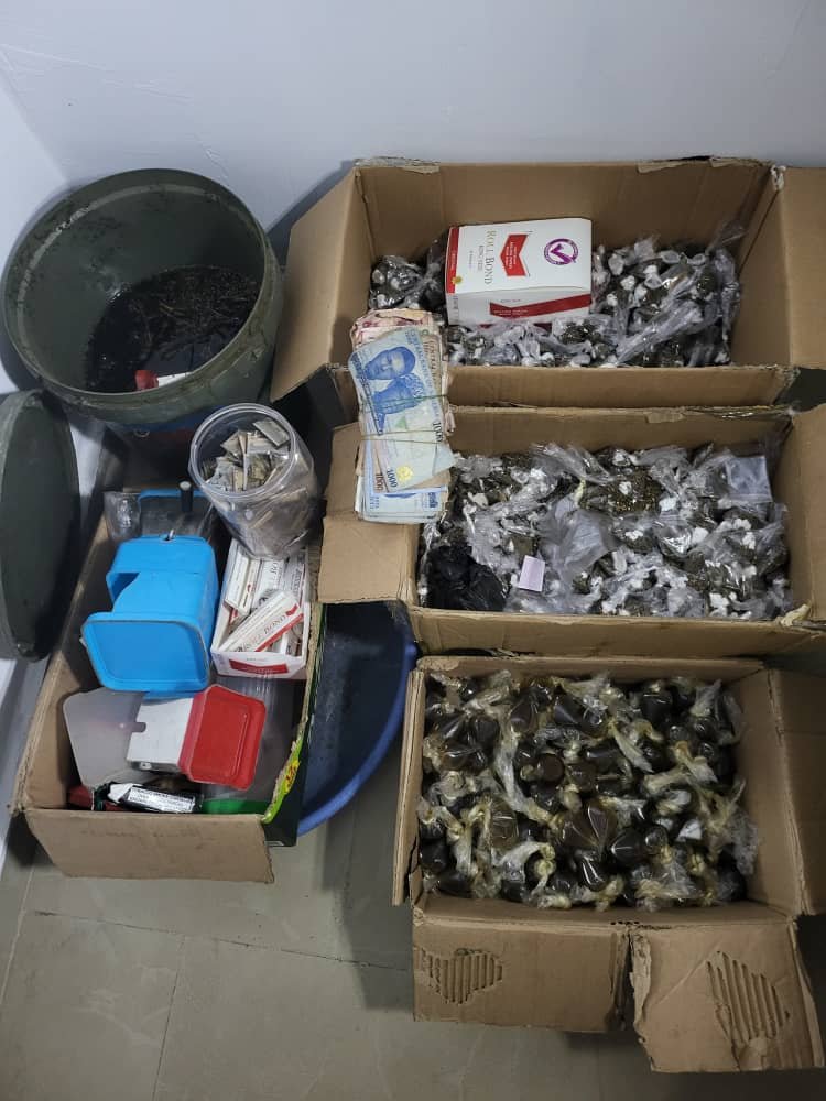 “A search of the premises led to the recovery of various quantities of suspected hard drugs, including cannabis (weed), kolos, ice, loud, and fermented Indian hemp. Also recovered were three blenders suspected to be used in processing the substances and the sum of ₦55,000, believed to be proceeds from the illicit drug trade.