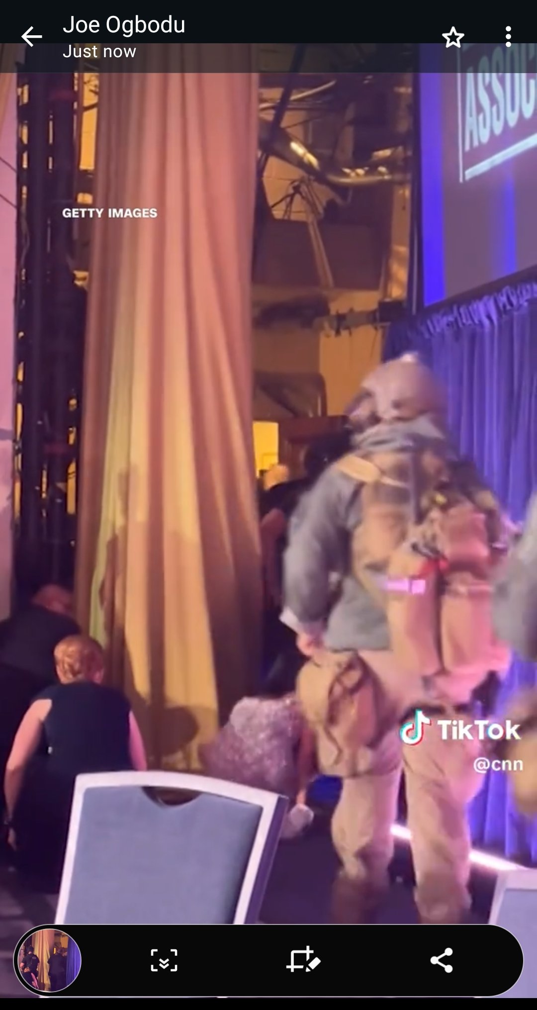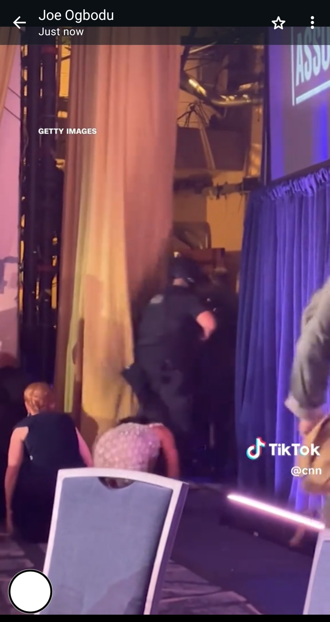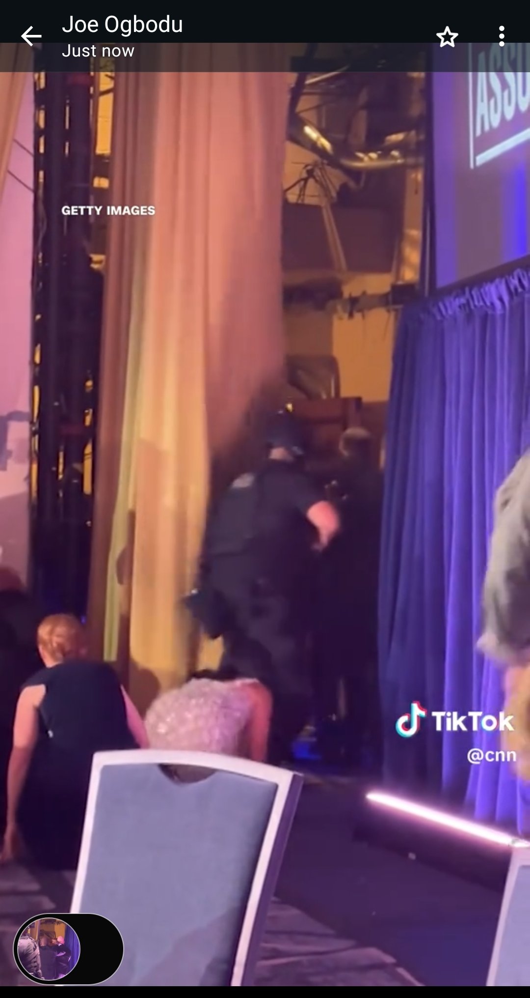 Guests ducked under tables as some reported hearing shots. The First Lady and others crawled on the floor to escape during the stand-down. A law enforcement officer was hit in his bullet-resistant vest but is expected to recover.