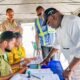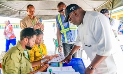 Governorship candidate of People Democratic Party (PDP) in Delta state, Rt Hon Sheriff Oborevwori and his running mate, Chief Monday Onyeme, voted at Oha One, Unit...
